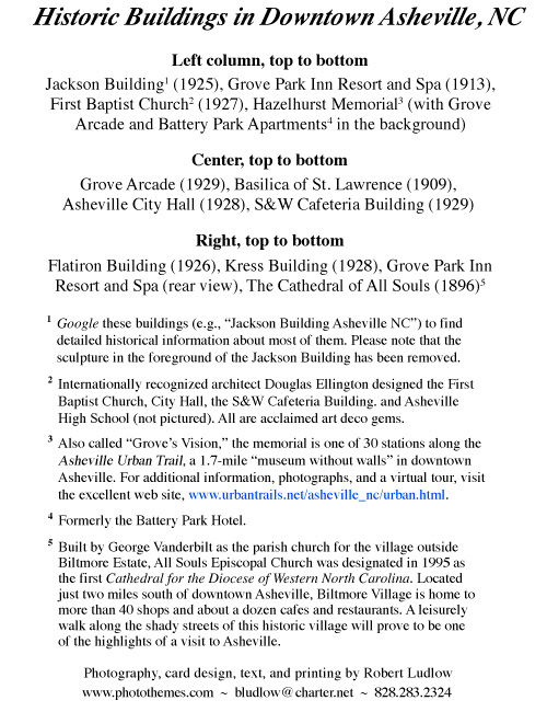 So yesterday afternoon I picked up two copies of the tournament program from the publisher’s office, and I gotta tell you I was highly pleased with the way they presented the photo, right at the top of the page above the mayor’s welcoming message. Many thousands of people would soon be looking at it, and some would be checking my website, photothemes.com, where they would find the Skyline photo, contact information, and about a dozen photos of the historic buildings in downtown Asheville, including this photomontage.
