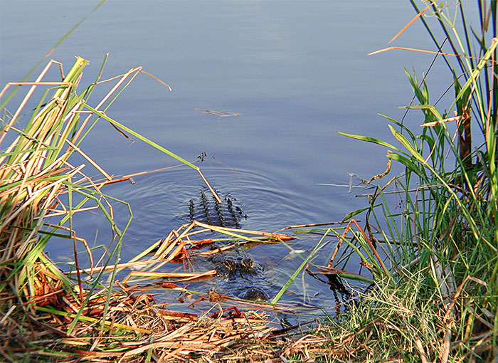 The next two photos were taken in Panama City, FL, circa 2000. Approximately 20 tourists were watching this guy from the safety of a wooden pier just out of the frame, to the left. I ventured down as close as I dared to get this snapshot. I did not have a long zoom lens, so I was about as close as it looks, just a few feet away. Maybe I’m wrong, but it seems doubtful that a gator would leave the water to attack an adult human on land. http://adventure.howstuffworks.com/alligator-zigzag1.htm edit